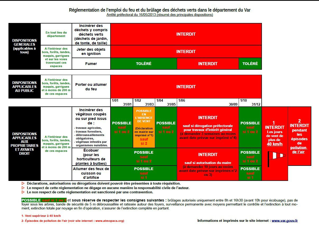 - Règlementation de l'emploi du feu dans de département du VAR